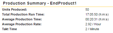 生產(chǎn)摘要報(bào)告顯示模型的生產(chǎn)單位,總生產(chǎn)運(yùn)行時(shí)間,平均生產(chǎn)時(shí)間,平均生產(chǎn)率和生產(chǎn)節(jié)拍時(shí)間。